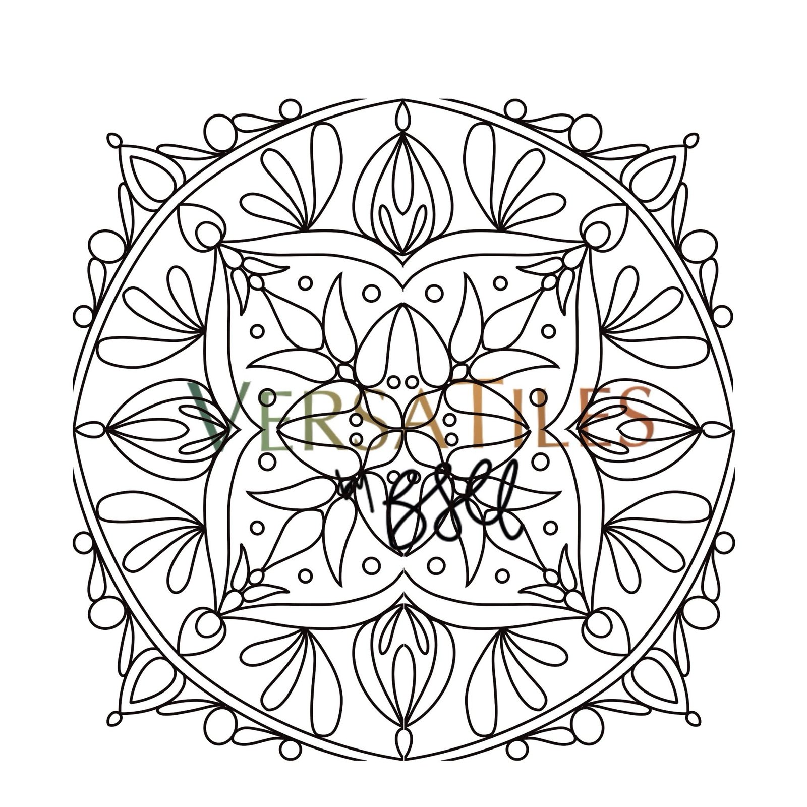 This PDF includes two pages, one of the tile and one of the complete Rangoli design.
